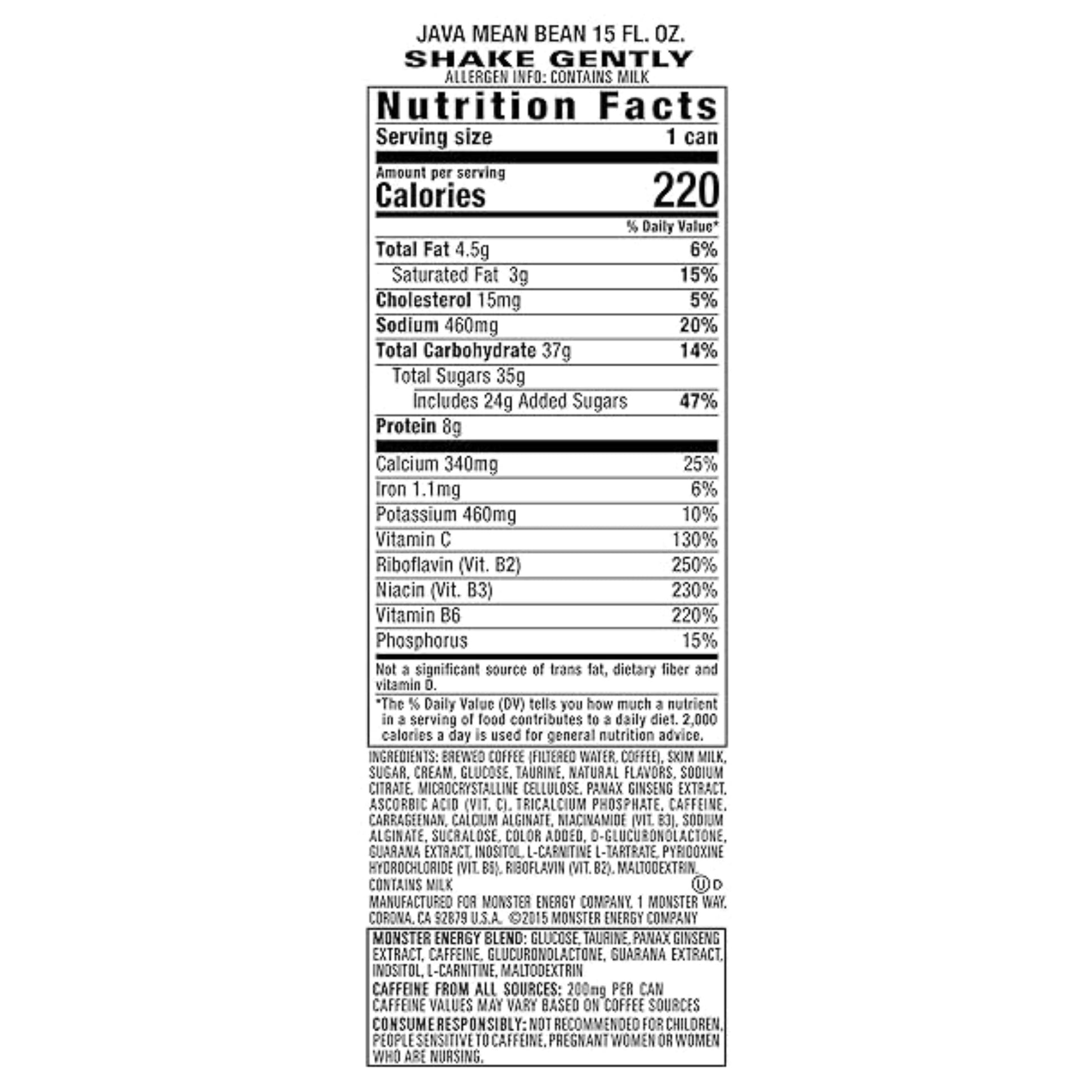Monster Energy Java Monster Mean Bean, Coffee + Energy Drink, 15 Ounce (Pack of 12)