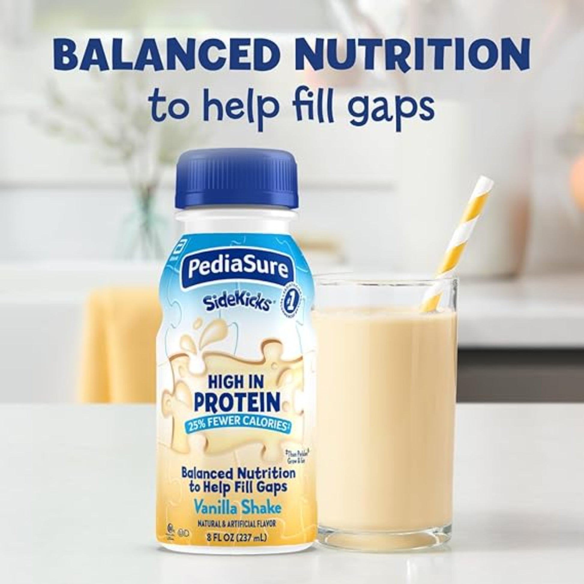 PediaSure SideKicks, Kids Protein Shake, With Key Nutrients and Protein to Help Kids Catch Up on Growth and Fill Nutrient Gaps, Vanilla, 8-fl-oz Bottle, Pack of 24
