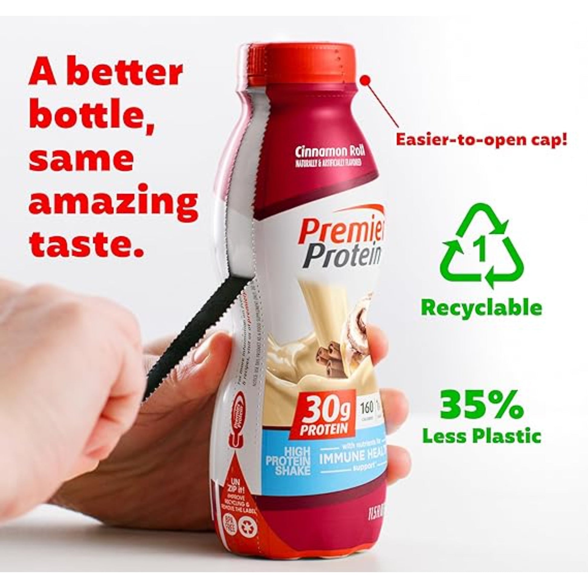 Premier Protein Shake, 30g Protein, 1g Sugar,24 Vitamins&Minerals Nutrients to Support Immune Health, Cinnamon Roll,11.5 fl oz - Pack of 12