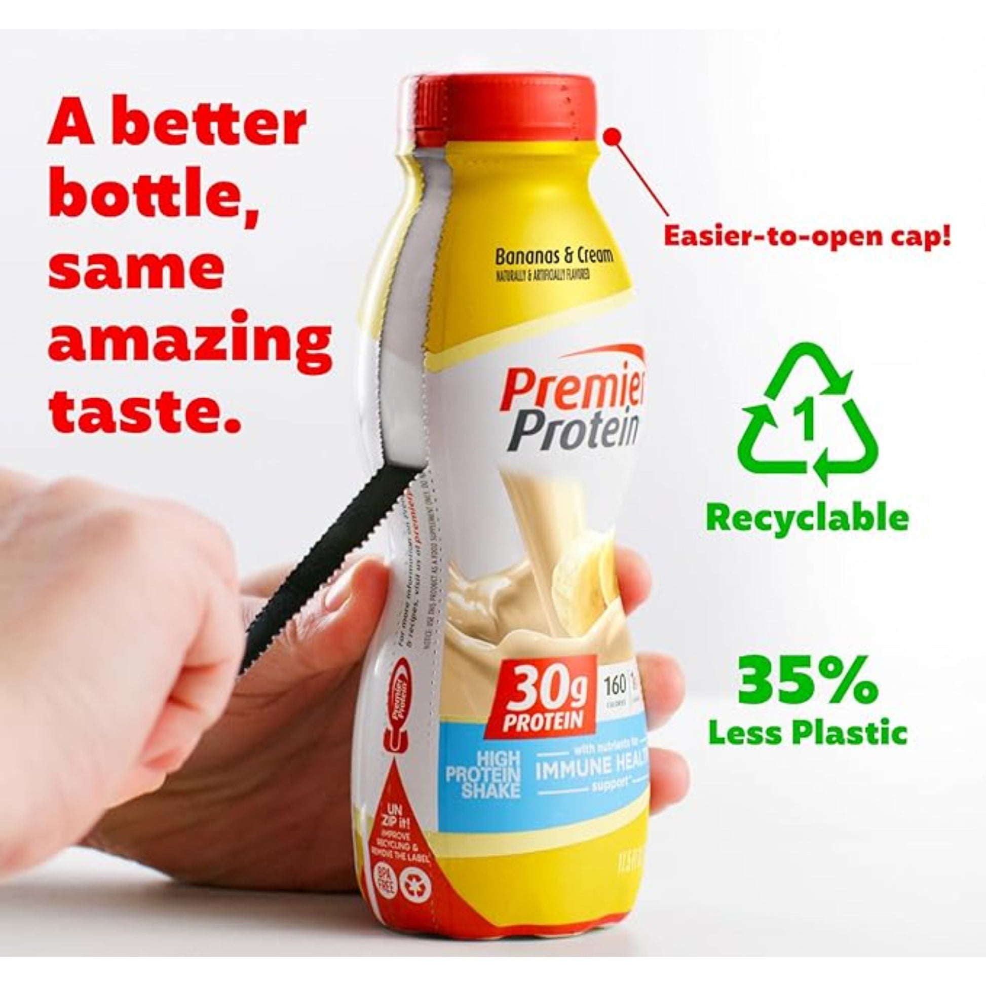 Premier Protein Shake, Bananas & Cream, 30g Protein, 1g Sugar, 24 Vitamins & Minerals, Nutrients to Support Immune Health, 12 Pack