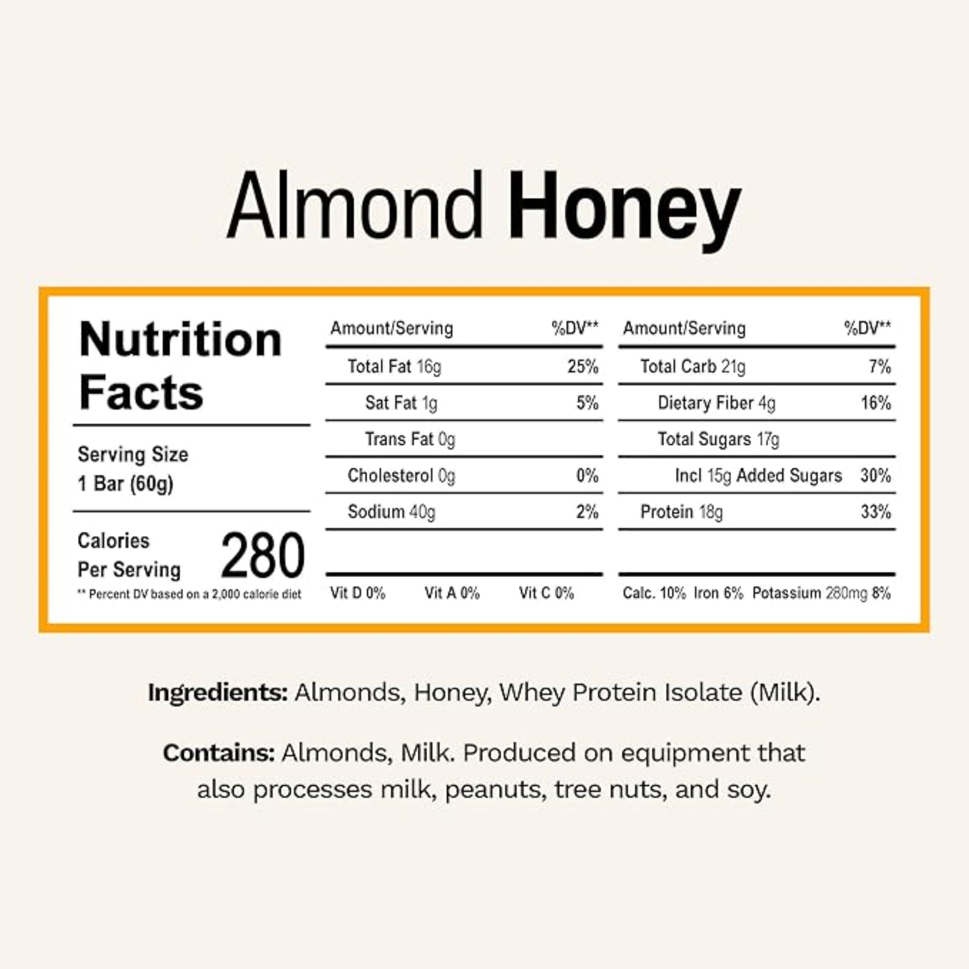 Rise Breakfast Whey Protein Bars Almond Honey, 18g Protein, 2.01 oz (12 Pack)